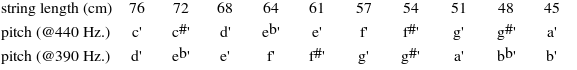 Relative Pitches of the Strings